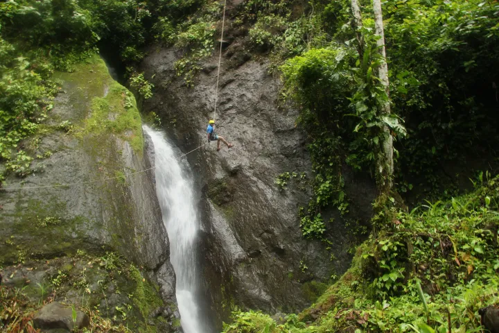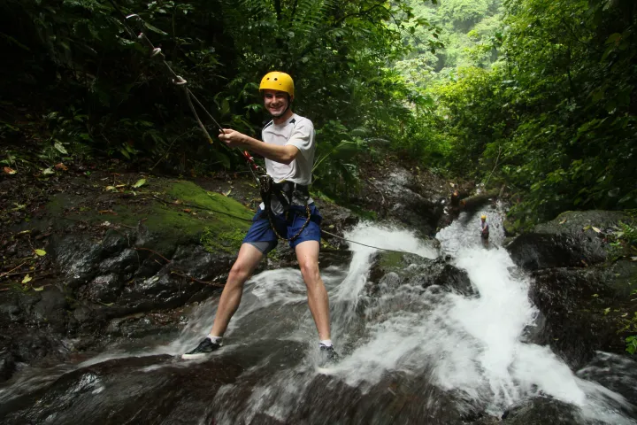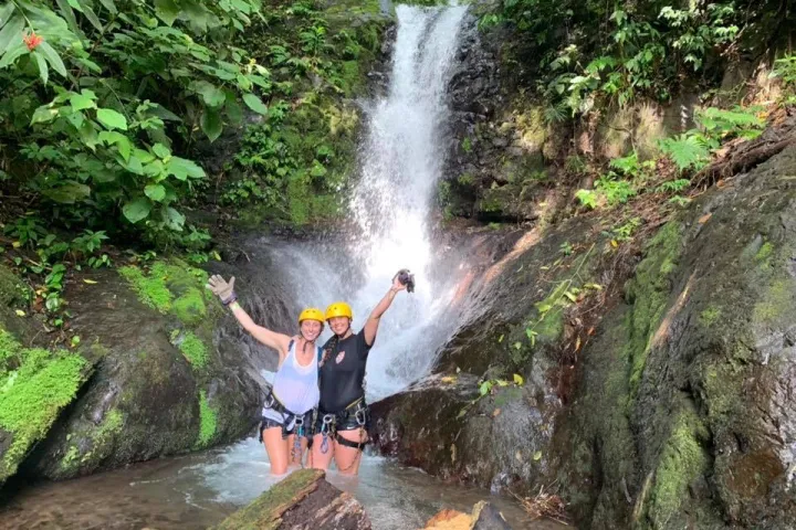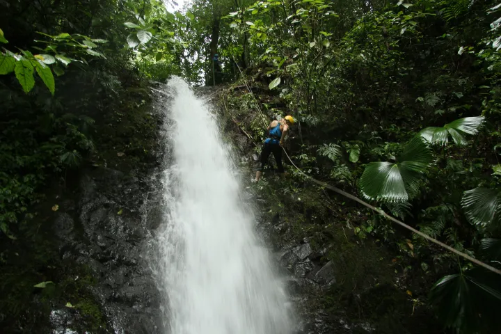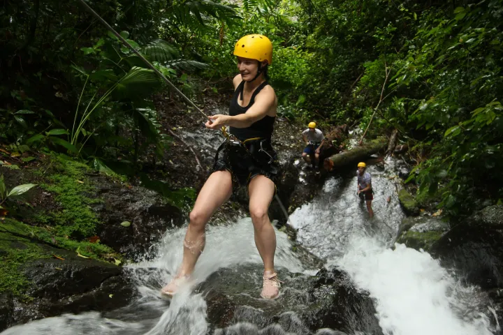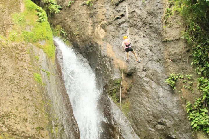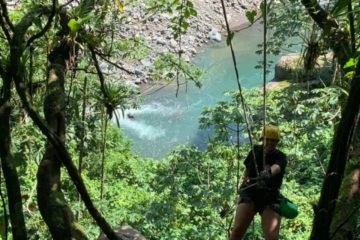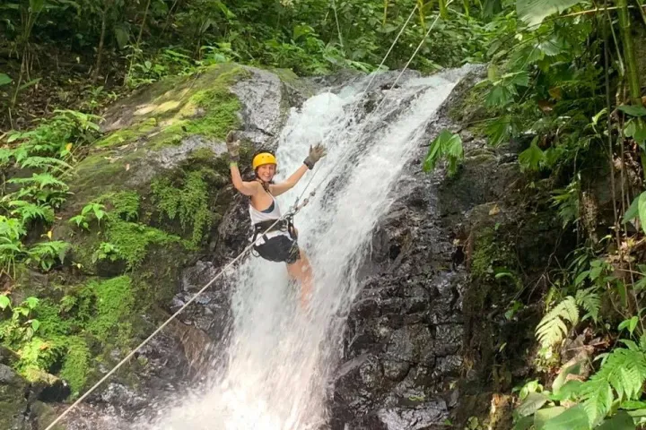For a fun and exhilarating experience of Costa Rica’s amazing landscape, don’t miss this canyoning excursion! The adventure are located 30 minutes drive from La Fortuna. We do this canyoning twice a day. In the early morning or early afternoon. You will rapell down 3 waterfalls (25meter, 37meters, 45meters.) At the end we will relax in the natural hot water river. – This is the ultimate canyoning experience!